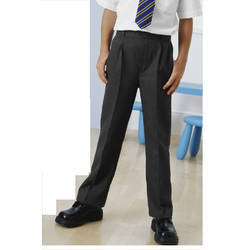 School trousers are tailored, formal pants worn as part of a school uniform. Made from durable fabrics, they are designed for comfort and a neat appearance, typically in neutral colors like black, navy, or grey.