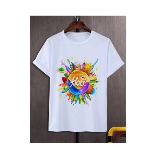 Colorful Holi-themed T-shirts perfect for the festival of colors, featuring vibrant designs, playful slogans, and comfortable fabrics. Ideal for adding fun, festive flair to your Holi celebrations!