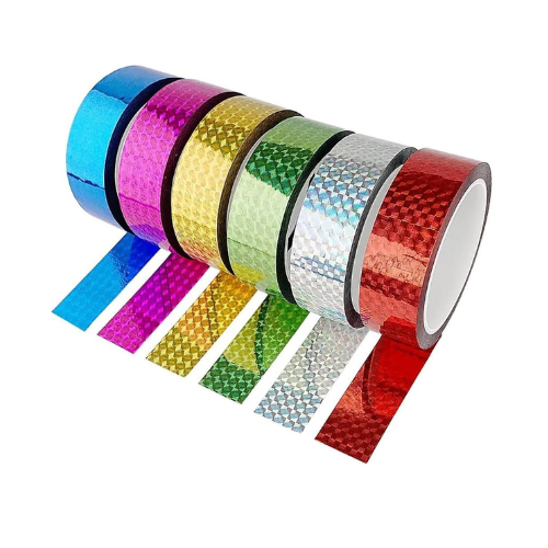 Hologram tape is a decorative adhesive tape featuring a holographic pattern that reflects light, creating a shimmering, three-dimensional effect. Commonly used for packaging, crafts, and embellishing items, it adds a visually striking touch to gifts, labels, and art projects. This tape is available in various widths and can be easily applied to surfaces, enhancing the aesthetic appeal of everyday items.
