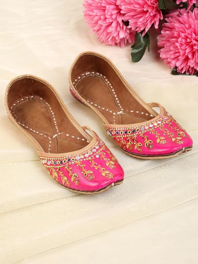 Ladies mojari are traditional handcrafted flat shoes known for their elegant embroidery and ethnic design. They are commonly worn with traditional outfits during festivals, weddings, and cultural occasions.