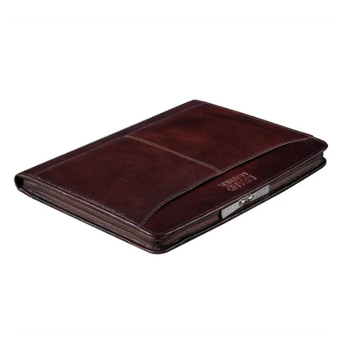 Leather document holders are elegant, durable accessories designed to store and organize important papers, contracts, or files. Made from high-quality leather, they provide a professional look while protecting documents from damage. Ideal for business meetings or travel, these holders combine functionality with style, ensuring documents are secure and easily accessible.