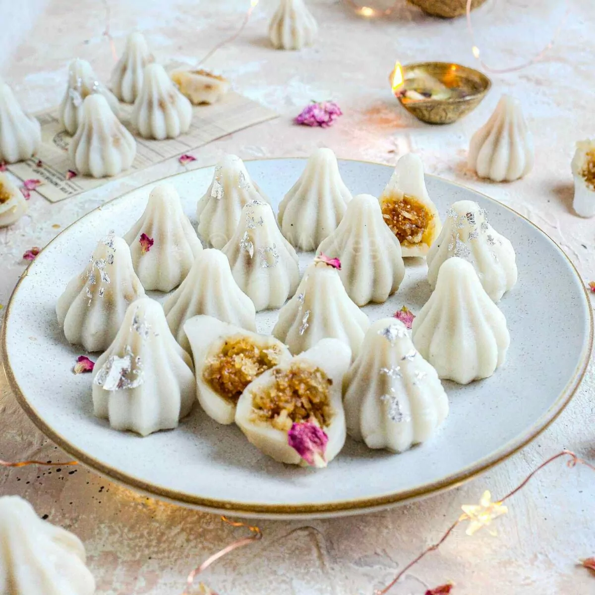 Modak is a traditional Indian sweet dumpling made with rice flour or wheat flour and filled with coconut and jaggery. It is especially popular during Ganesh Chaturthi and is considered Lord Ganesha’s favorite sweet.