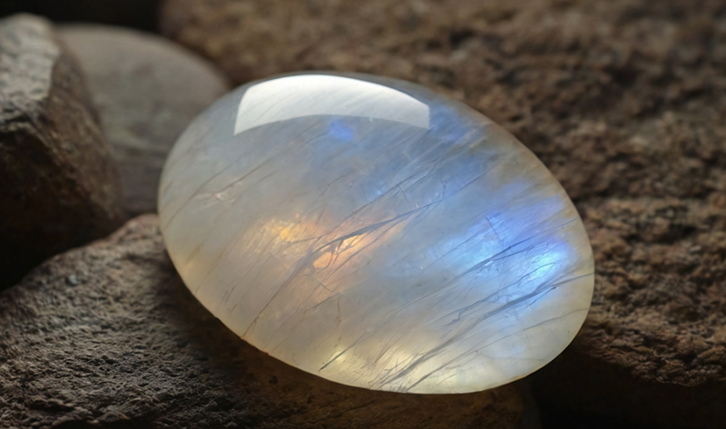 Moonstone, a mystical gemstone with a glowing sheen, symbolizes intuition, balance, and new beginnings. Revered for its calming energy, it's often used in jewelry and spiritual practices.