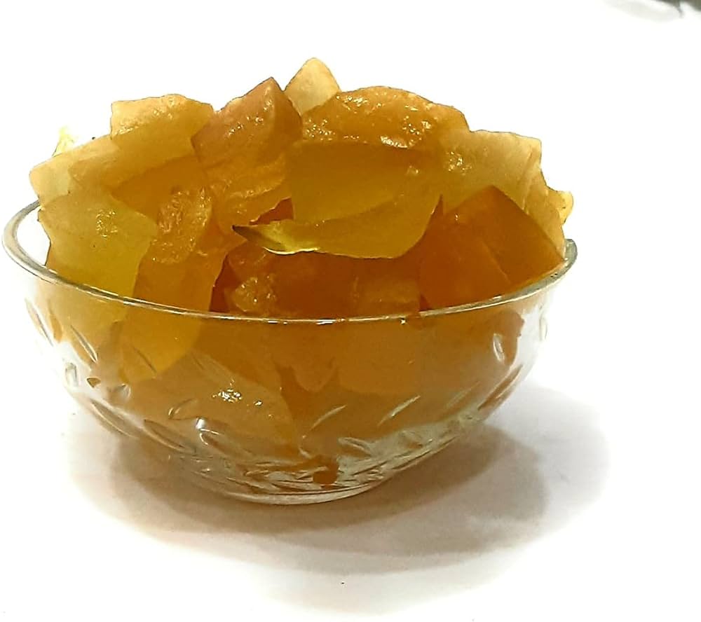 Papaya Murabba is a nutritious sweet preserve made from ripe or raw papaya cooked in sugar syrup. Rich in fiber, antioxidants, and vitamins, it aids digestion, boosts immunity, and promotes overall well-being.