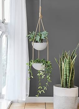 Space-saving tiered hanging planters feature multiple levels to display a variety of plants beautifully. Perfect for compact areas, they add vertical elegance to indoor or outdoor spaces while maximizing greenery.